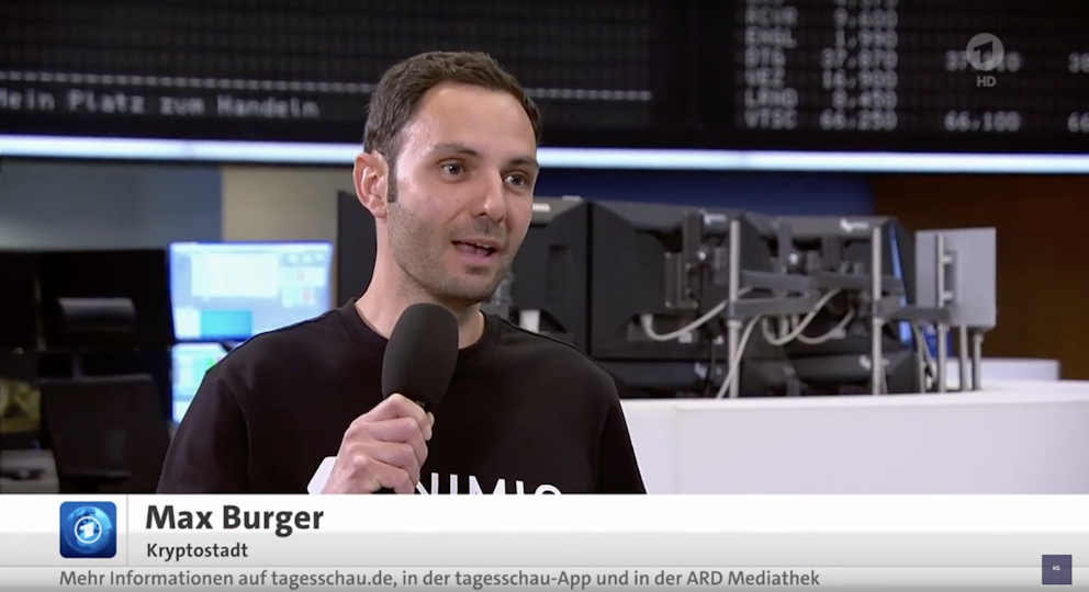 Max Burger, project manager of the Cryptocity Initiative, appeared on "Update Wirtschaft" on Tagesschau24 to present the work of the initiative. During the interview with Emal Atif, he provided insights into the ambitious goals of the project and explained how Cryptocity Mannheim aims to become a pioneer in the acceptance and use of cryptocurrencies.